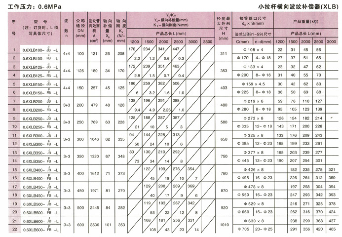 小拉桿橫向波紋補償器(XLB型)產品參數1