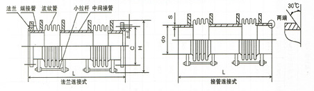 小拉桿橫向型波紋補(bǔ)償器除可以補(bǔ)償彎曲管段的橫向位移和角位移,同時(shí)也可以補(bǔ)償軸向位移。樣本中所列出的軸向補(bǔ)償量及橫向補(bǔ)償量(X0、Y0)均為單獨(dú)用作軸向補(bǔ)償或橫向補(bǔ)償?shù)腳值,此種情況應(yīng)分別滿足下列關(guān)系式: